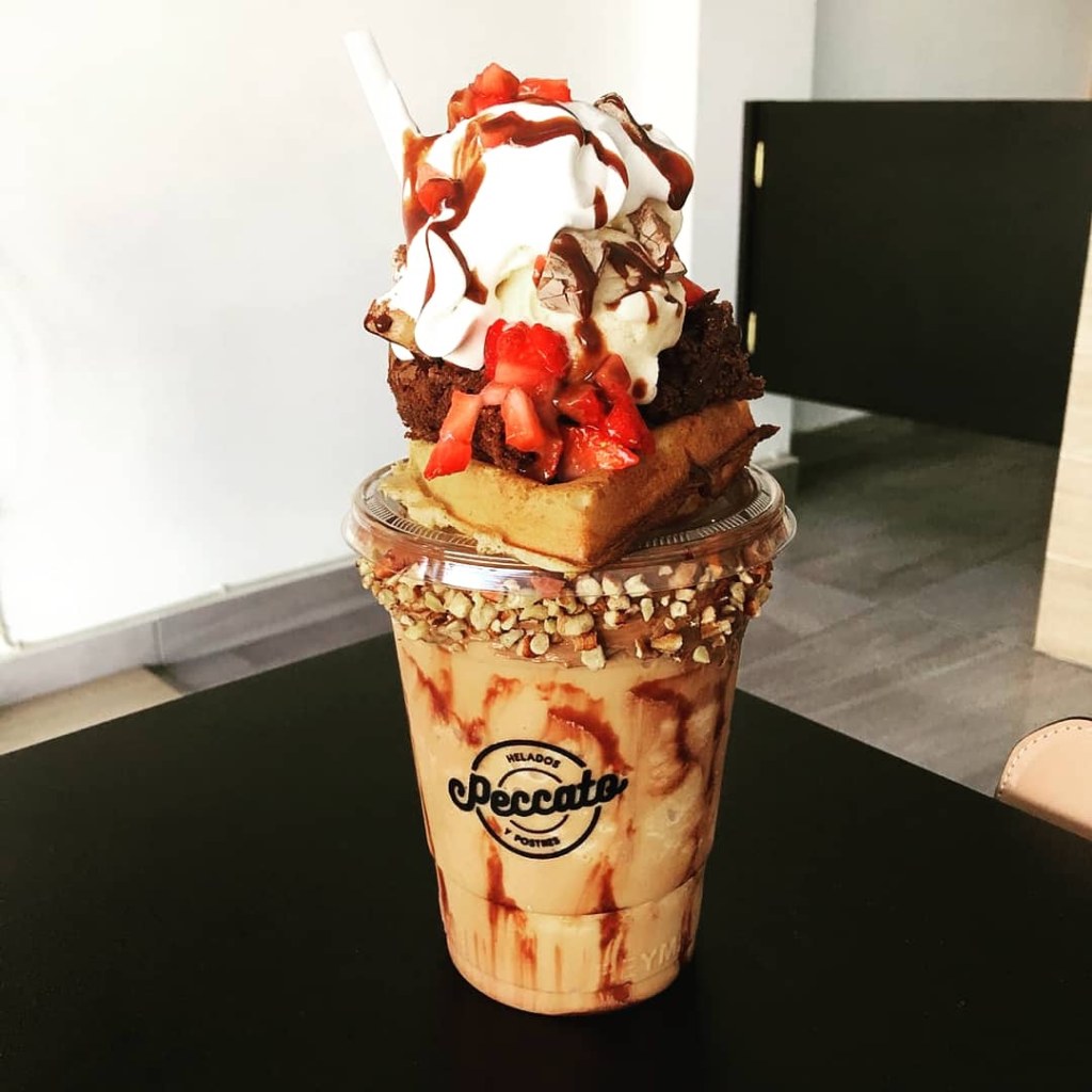 Profiterol Gigante • Helado de Queso Bola • Cobertura de Chocolate • Cacao • Pimienta Rosa • Piñones